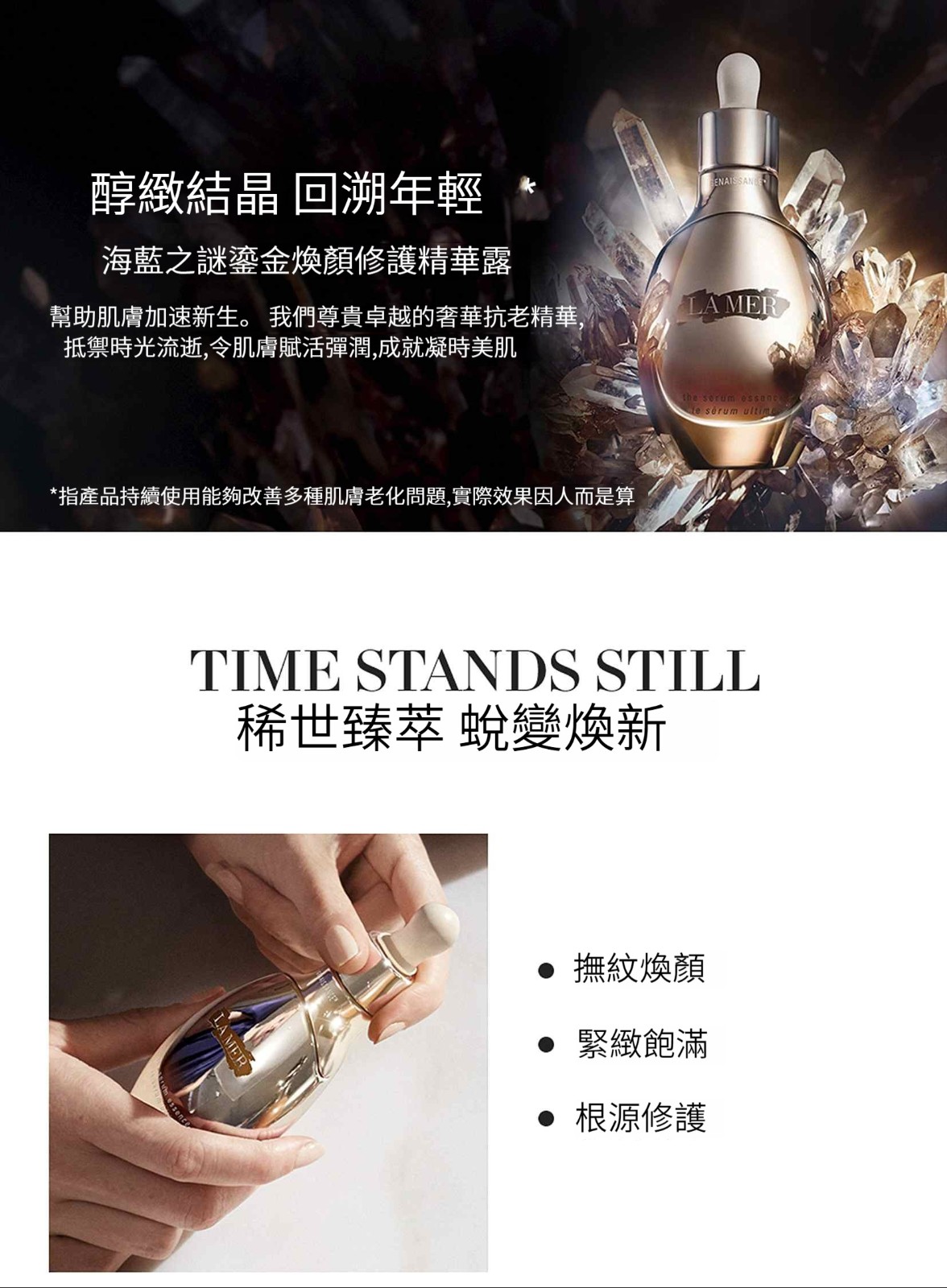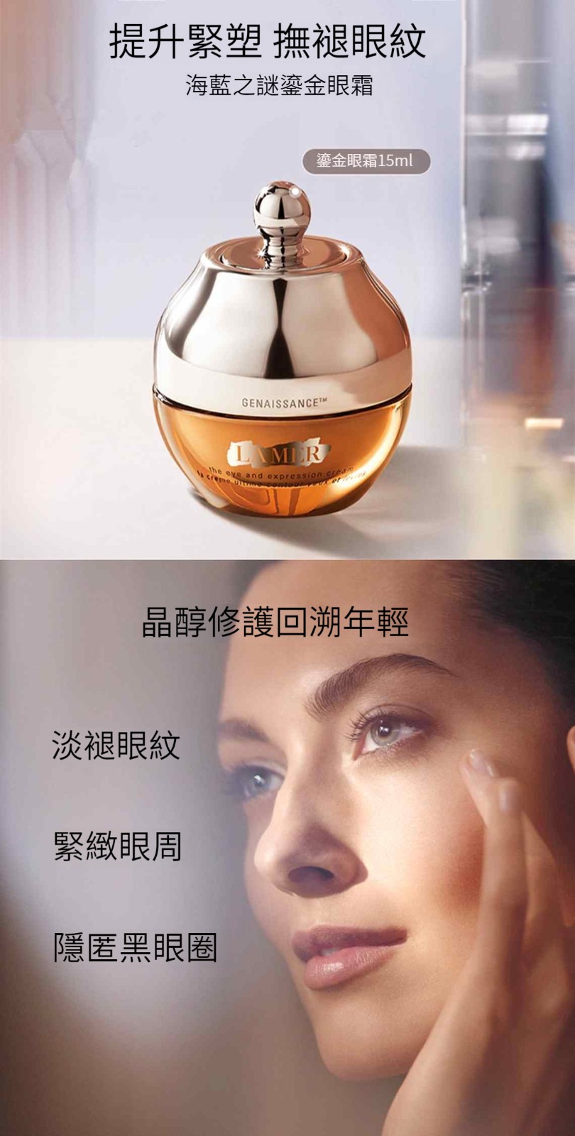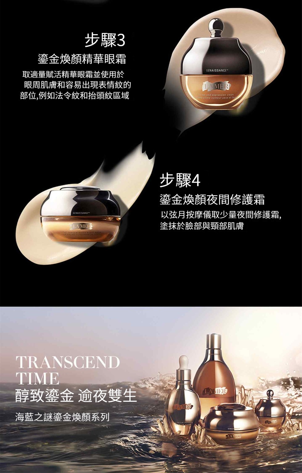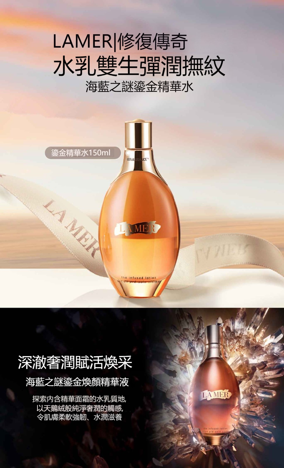 YATA 一田丨現代日式生活百貨【重磅福利激殺搶購】 LA MER 鎏金煥膚三件套 The Serum Essence鎏金煥膚精華30ml/The Infused Lotion鎏金煥膚修護液150ml/The Eye and Expression Cream鎏金煥膚全效修復眼霜15ml。體驗Genaissance de la Mer™鎏金煥膚系列,以Crystal Miracle Broth™ 鎏金煥膚精華跨越時限、逆轉肌齡。夜復夜,見證肌膚一覺醒來更亮澤緊緻、如獲新生,顯著抹走細紋、皺紋所有歲月痕跡。著抹走細紋、皺紋所有歲月痕跡。